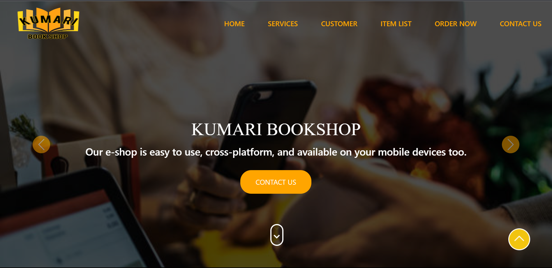 The Kumari Bookshop website is a user-friendly and visually appealing platform developed using a stack of web technologies, including HTML, CSS, Bootstrap, and jQuery. This website offers an engaging and accessible interface for book enthusiasts to explore a wide range of titles and literary content. With its responsive design and modern features, the Kumari Bookshop website provides an enjoyable online shopping experience for book lovers and is a valuable resource for literary enthusiasts. Website can be visited by clicking here.